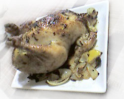 ・鶏のおなかにたまねぎとレモンを詰め込みます